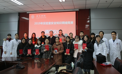 为了加强实验室安全知识普及,鼓励学生积极参与实验室安全知识网络竞赛,1月17日上午,园艺科学研究中心举办了2019年实验室安全知识网络竞赛颁奖仪式。获奖学生及我院实验室人员参加了本次活动,颁奖仪式由实验总师张静主持。